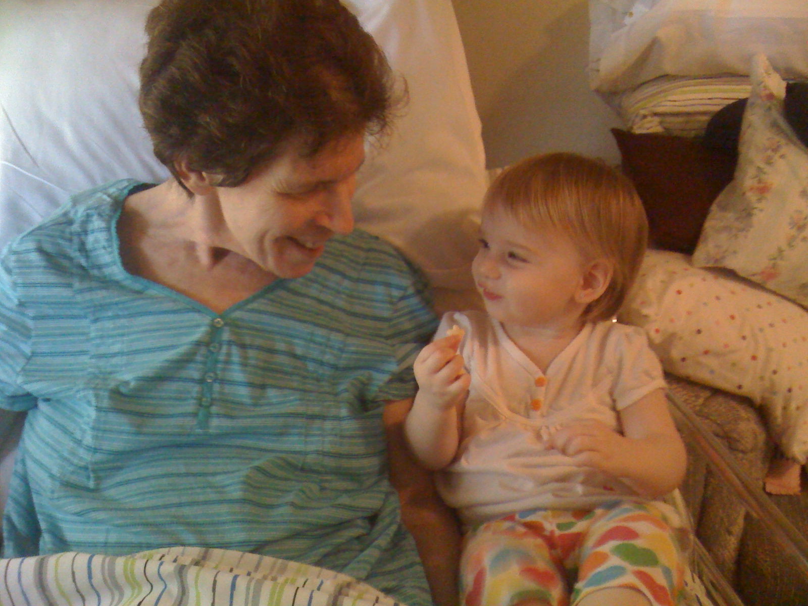 We had a great time seeing Mom yesterday! Aspynne was so sweet to her, and I was even able to take some sweet pictures of her and her MiMi! Mom seemed overall in good spirits, and didn't seem in too much pain while we were there. I know that she is still very discouraged by her inability to move, but at least for the time we visited, was cheerful. She loves getting to see the girls...I just wish that we could get out to see her more often.